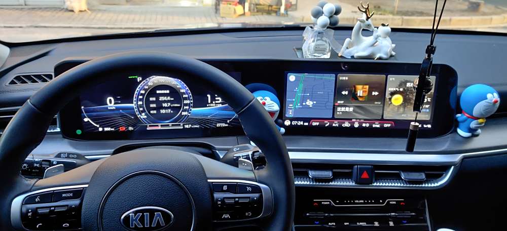 K5的内饰也和索纳塔大同小异,高配是两个大连屏,低配是一大一小两个屏,硬塑料颇多。车机系统和百度深度合作,在合资品牌中型车当中属于上游水平,不过不支持苹果Carplay属实一大遗憾。空调控制也是值得吐槽的放在触控屏上,调温度非常分散驾驶员的注意力。